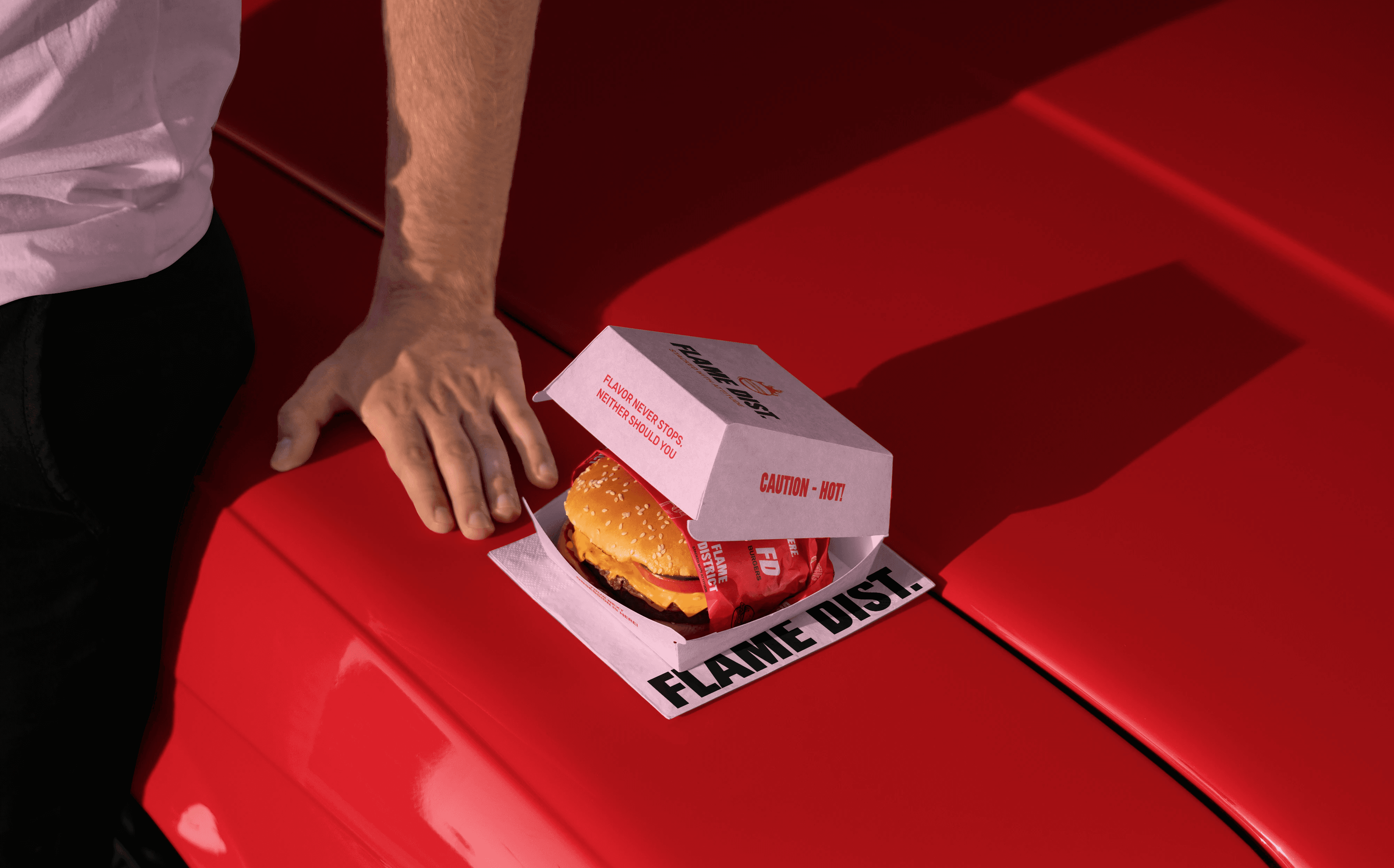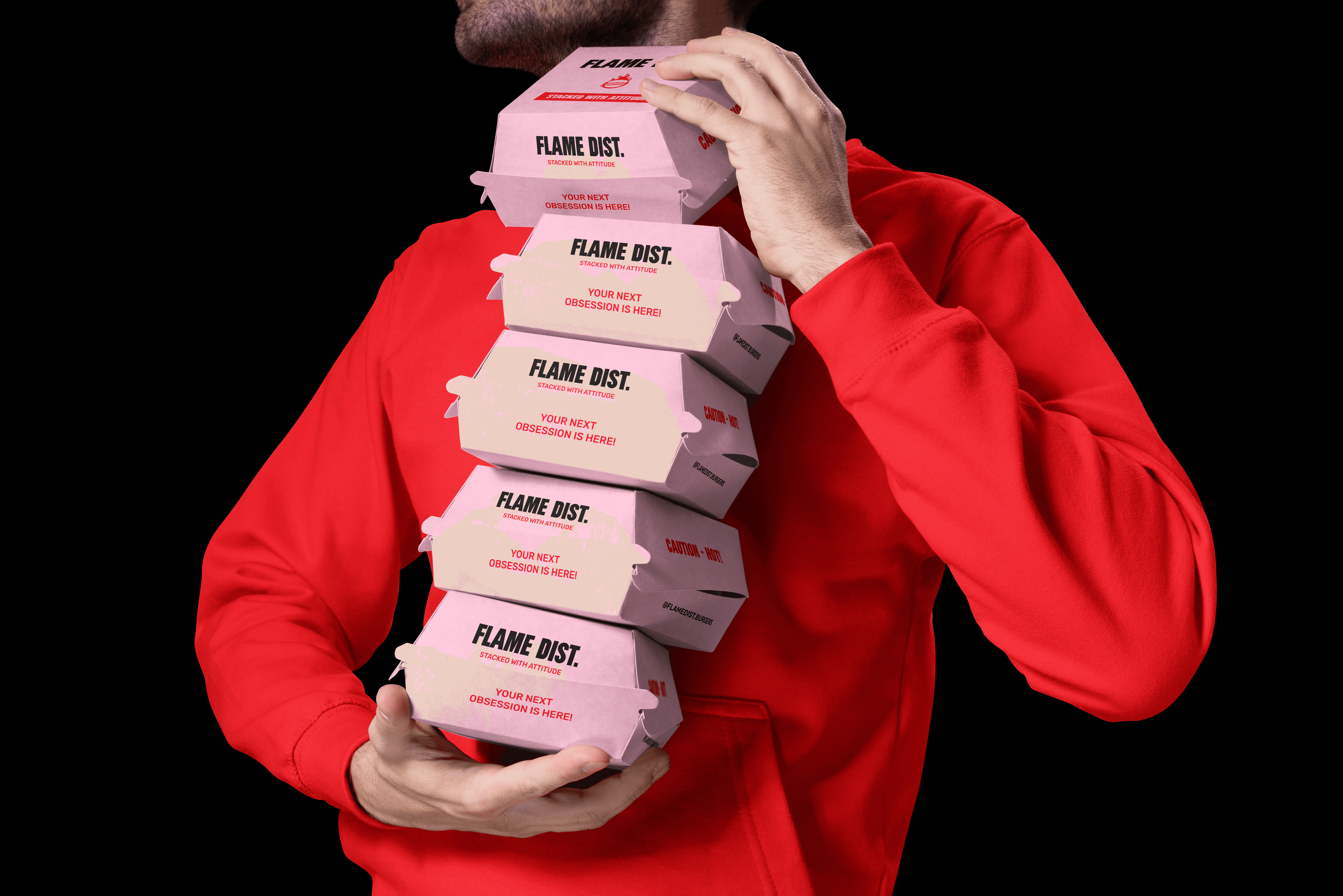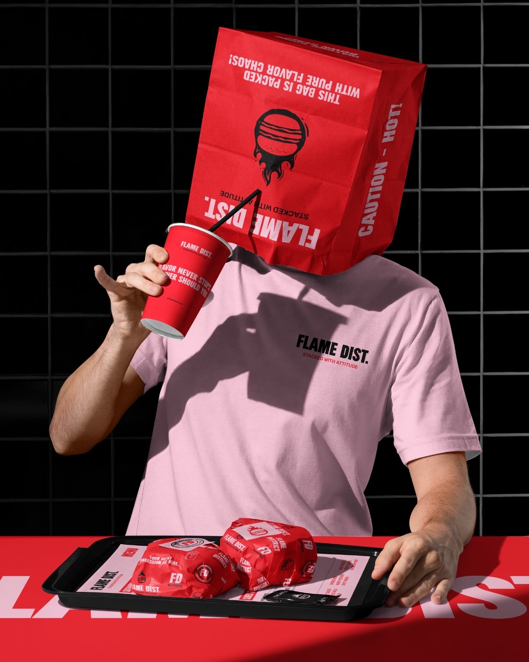 The branding leans into high-contrast colors, bold typography, and cheeky messaging to give every wrapper, bag, and cup its own personality. Designed to stand out in a fast-food landscape, Flame District’s look matches the heat and energy of its menu - loud, playful, and stacked with flavor.